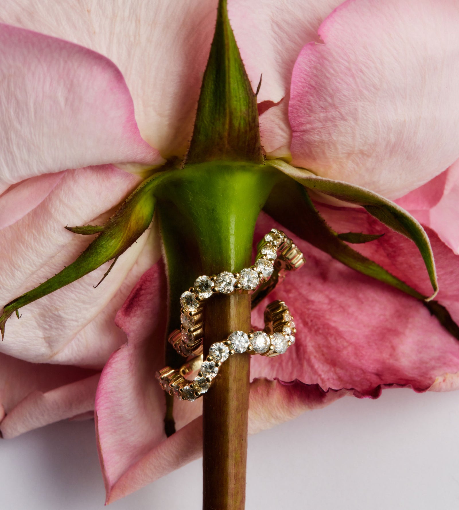 Capturing the irregular rhythms found in nature, the Caprice ring mimics the graceful curl that forms on the edge of a leaf. Set in recycled solid yellow gold, with 25 graduating, round, natural diamonds (1.455cts).